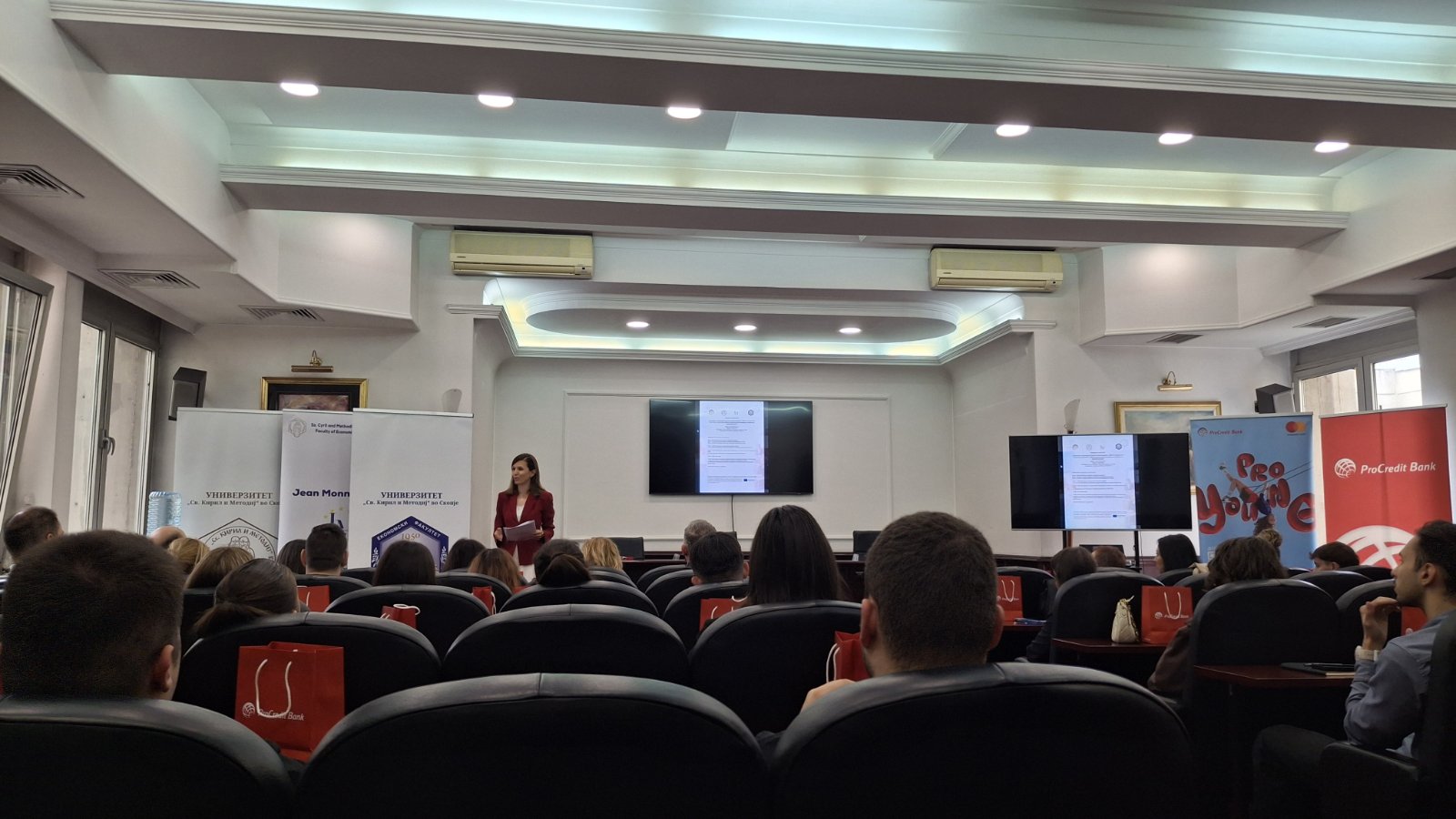 The one-day training held on 16 April 2026, titled “The Carbon Border Adjustment Mechanism (CBAM) and the Macedonian Industry: Regulatory Obligations, Financial Implications, and Decarbonization Strategies”, co-organized with ProCredit Bank Macedonia, brought together representatives from academia, public institutions, industry, and the banking sector. The event provided a constructive platform for discussion on the implications of CBAM for the Macedonian economy.