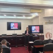 The workshop opened with welcoming remarks by Prof. Elena Makrevska Disoska, Jean Monnet Chair Coordinator, who emphasised the importance of aligning regional transport policies with the EU’s sustainability and decarbonization goals. The first session, led by Dr. Jakub Doński-Lesiuk from the University of Łódź, addressed current trends in sustainable mobility, EU policy frameworks, and case studies from Central and Eastern Europe. The second session, presented by Mr. Petar Vasilev from NAVICO SHIPPING, focused on regional initiatives for cleaner transport, investment challenges, and innovative approaches in transport and logistics.